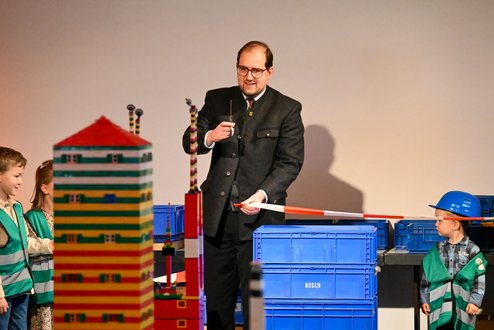 Im Rahmen des Gottesdienstes am Sonntag-Vormittag wurde die Stadt dann voller Begeisterung den Eltern, Opas und Omas und den Geschwistern und Freunden präsentiert. Die Gäste haben nicht schlecht gestaunt, als sie die bunten Objekte in ihrer Vielfalt zu sehen bekommen haben. Schließlich wurde die Stadt nun von Bürgermeister Tobias Borho feierlich eröffnet. Auch die Mitarbeiter hatten viel Spaß beim Abbau und Sortieren der Legosteine. Eine tolle Aktion!
